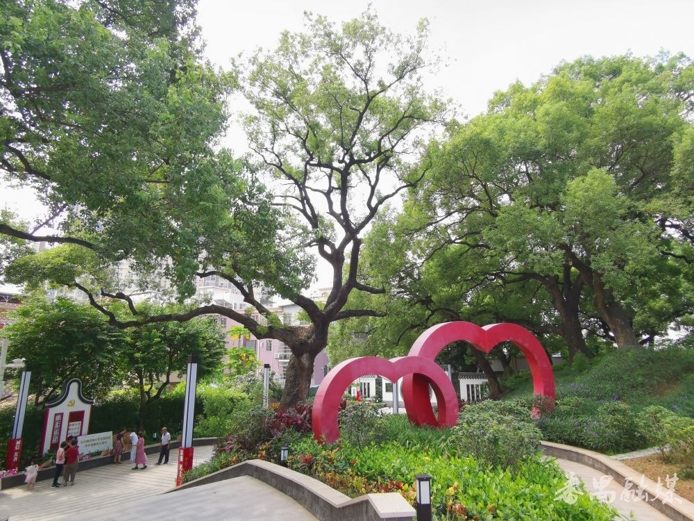 在古樟树公园内,长廊走道两侧栽种攀缘植物,藤蔓蜿蜒,绿叶成荫,为活动群众撑起一片清凉天地,即便烈日当空,亦能享受舒适惬意的游园时光。小径上,舞蹈爱好者们随着悠扬旋律翩翩起舞,在公园美景的映衬下,构成一幅温馨和谐的生活画卷。